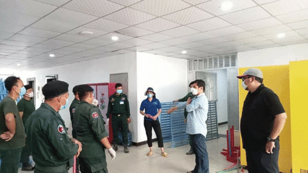 ឯកឧត្តម ម៉ែន វិបុល អញ្ជើញចុះពិនិត្យ និងដឹកនាំកងកម្លាំង អាជ្ញាធរដែនដី និងមន្ត្រីសុខាភិបាល រៀបចំកន្លែងត្រៀមបម្រុងទុកសម្រាប់ព្យាបាលអ្នកជំងឺកូវីដ១៩ស្ថិតនៅទីតាំងអាគារស្នាក់នៅរបស់ក្រុមហ៊ុនការស៊ីណូបាវិតម៉ុកបាយ សម្រាប់សម្រាកព្យាបាលអ្នកជំងឺកូវីដ១៩ មានចំនួន ២៨៨ បន្ទប់