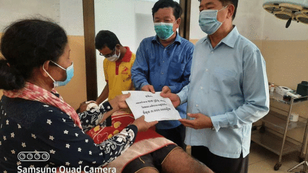 ជនរងគ្រោះដែលស៊ីឈ្នួលបើកត្រាក់ទ័រភ្ជួរដីចម្ការឱ្យគេផ្ទុះមីនតោន ទទួលបានថវិកាសង្គ្រោះបន្ទាន់ ពីសាខាកាកបាទក្រហមកម្ពុជាខេត្តប៉ៃលិន