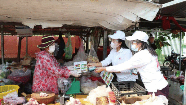 សាខាកាកបាទក្រហមកម្ពុជាខេត្តស្វាយរៀង បន្តចុះធ្វើ យុទ្ធនាការផ្សព្វផ្សាយពីវិធីកាត់បន្ថយ ហានិភ័យពីការឆ្លង ជំងឺកូវីដ-១៩ ដល់ប្រជាពលរដ្ឋ រស់នៅតាមទីប្រជុំជន តាមផ្លូវសាធារណៈ