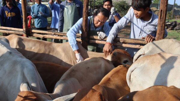 អាជ្ញាធរស្រុកស្ទោង សហការមន្ត្រូីជំនាញ ចុះយុទ្ធនាការចាក់ថ្នាំបង្ការជំងឺឆ្លងផ្សេងៗដល់សត្វគោក្របី