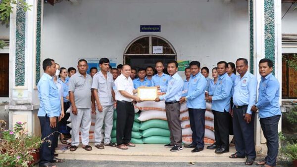 សាខាសមាគម សិស្ស និស្សិត បញ្ញវន្ត ក្មេងវត្តខេត្តព្រះវិហារ ទទួលអង្ករពីសាខាពន្ធដាខេត្តព្រះវិហារចំនួន៣តោនទុកសម្រាប់ធ្វើការងារមនុស្ស